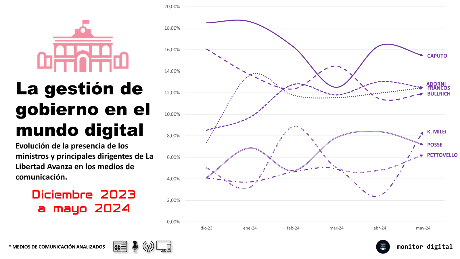 Adorni y Caputo se están afianzando cada vez más en las conversaciones de las plataformas sociales y en las publicaciones de los medios online.
