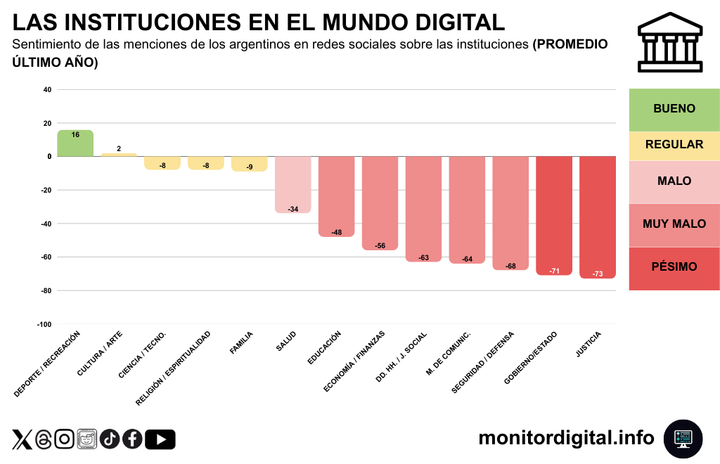El tablero no deja mucho espacio para eufemismos: en redes sociales, la institucionalidad argentina enfrenta un problema reputacional llamativo y desafiante para la legitimidad de las instituciones, andamiaje clave para la república.