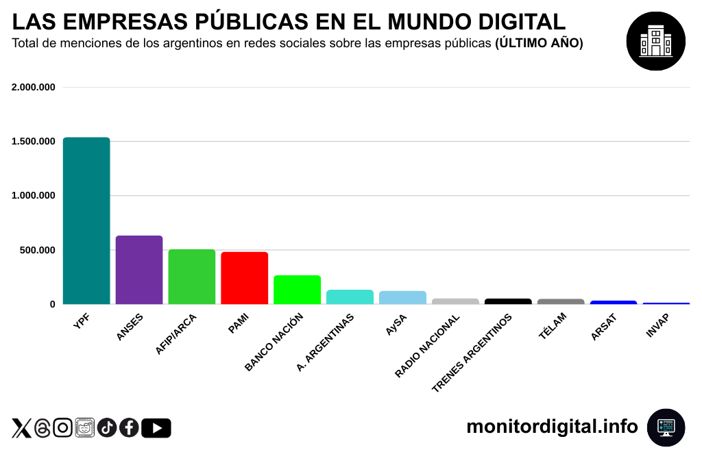 La conversación digital sobre las empresas públicas argentinas tiene un protagonista indiscutido: YPF.