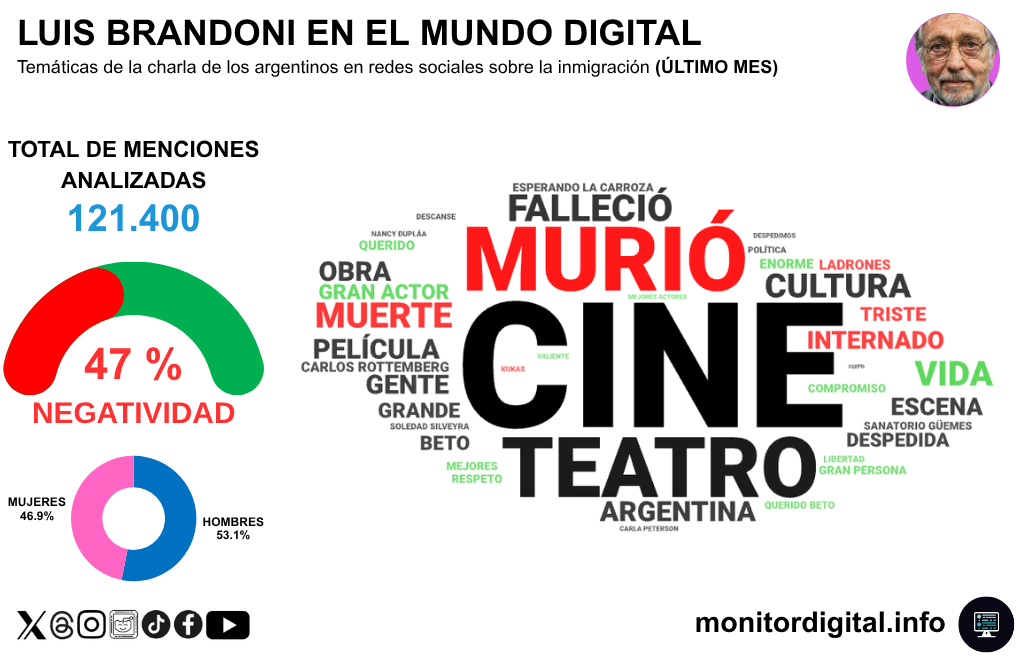 El 47% de negatividad detectado por Monitor Digital en la conversación de redes sobre Luis Brandoni podría leerse mal si se lo toma aislado.