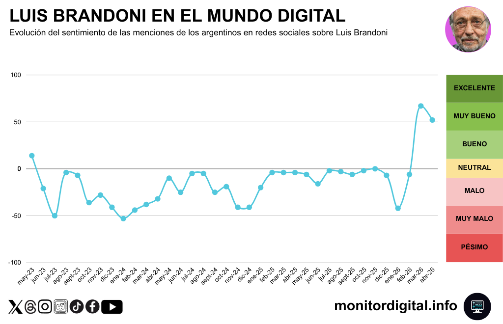 Eso confirma que el último gran ciclo de conversación sobre Brandoni no fue conflictivo, sino reputacionalmente favorable.
