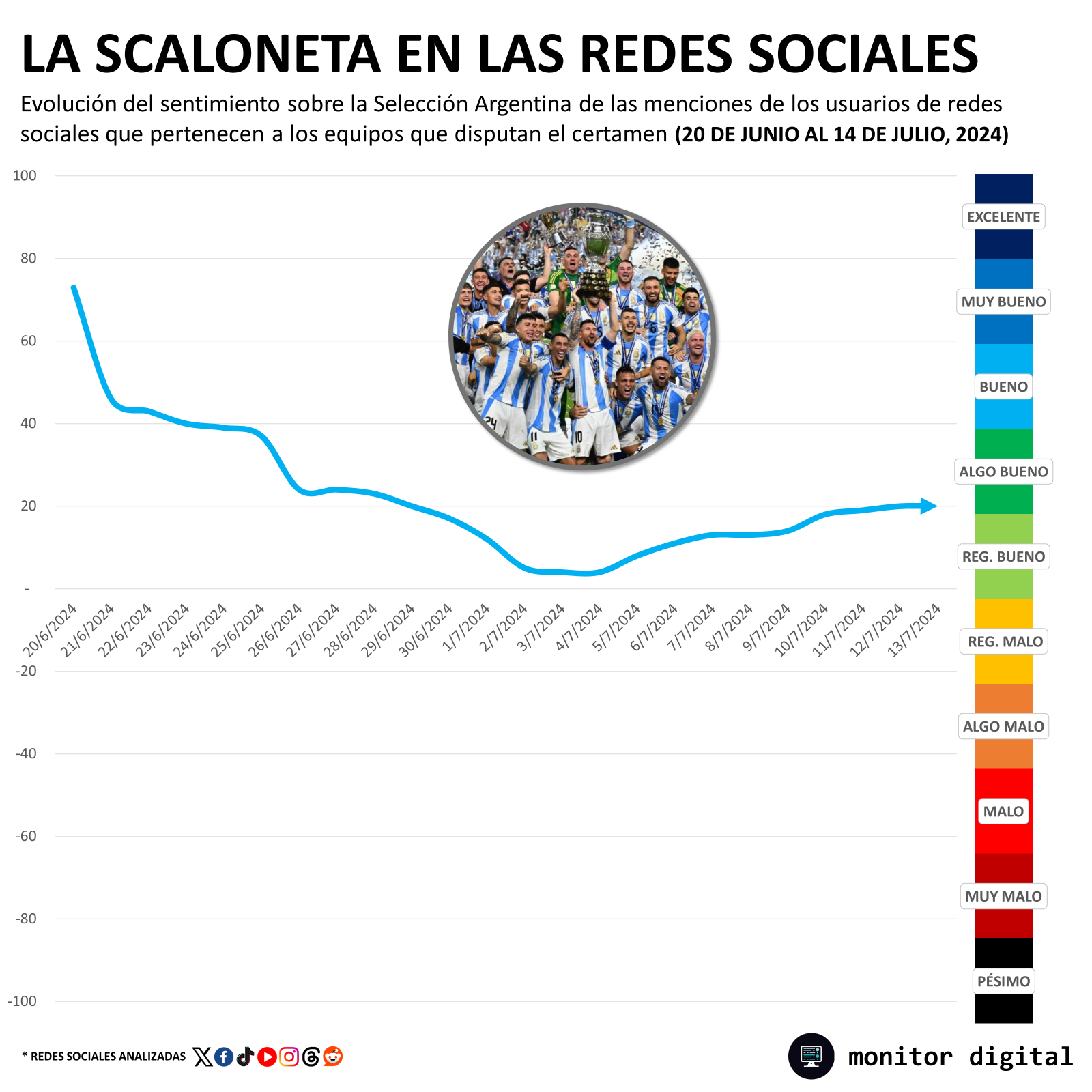 La Scaloneta mostró dominio de la conversación digital a lo largo de todo el certamen, con los usuarios fanáticos del fútbol del continente siempre destacando su condición de campeón.