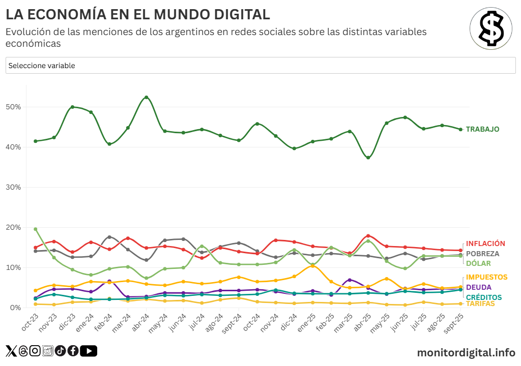 La cuestión del empleo sigue siendo el tema dominante en las menciones de las redes sociales argentinas.