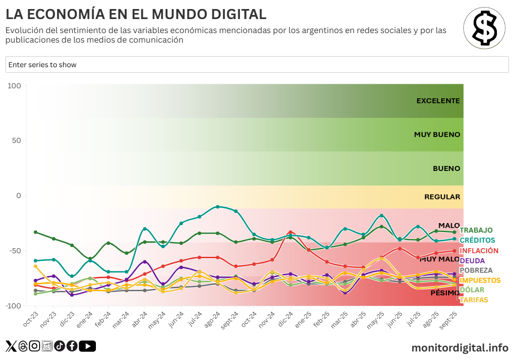 Una prioridad elocuente que surge de la conversación pública de las redes locales, al interior de las cuales la inflación sostiene la negatividad y los créditos aparecen como única ventana de alivio en medio de las turbulencias económicas.
