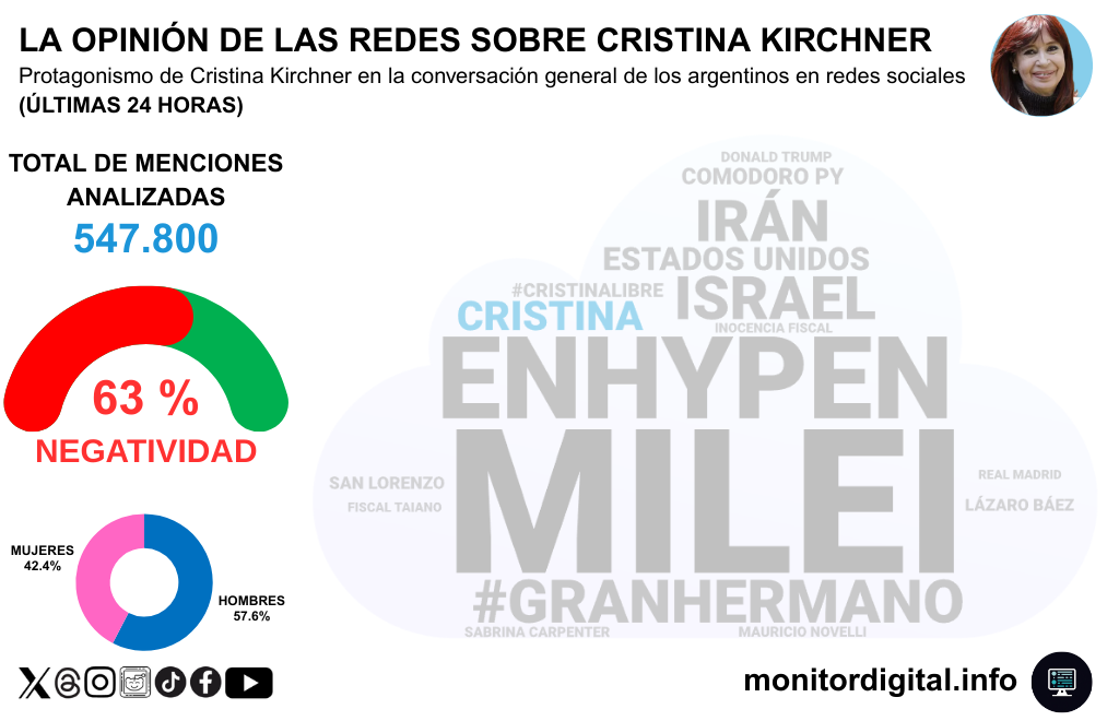 Los datos que surgen de la conversación de los argentinos en redes sociales sobre Cristina Kirchner muestran que su presencia en Comodoro Py activó el debate, pero bajo un encuadre hostil y con escasa capacidad de resignificación.