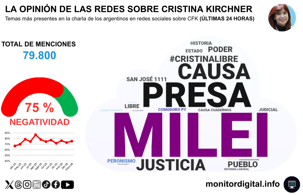 En las últimas 24 horas, su figura reunió 79.800, pero el volumen fue acompañado por un dato mucho más áspero: 75% de negatividad.