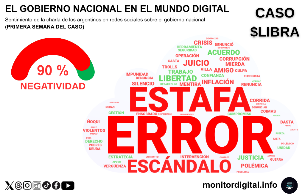 - En $LIBRA sobresalen “error”, “estafa”, “cripto” y “dólares”, que remiten más a un juicio ético sobre la figura del presidente y a la falta de prudencia en el uso de su cuenta oficial.
