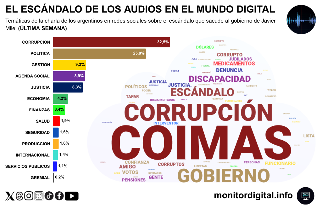 La corrupción aparece como el significante central del debate, con fuerte eco en el plano político, social y judicial, lo que consolida este caso como uno de los mayores desafíos reputacionales del oficialismo desde su llegada al poder.