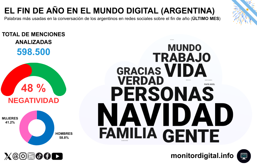 La conversación digital de los argentinos sobre fin de año reunió 598.500 menciones en el último mes.