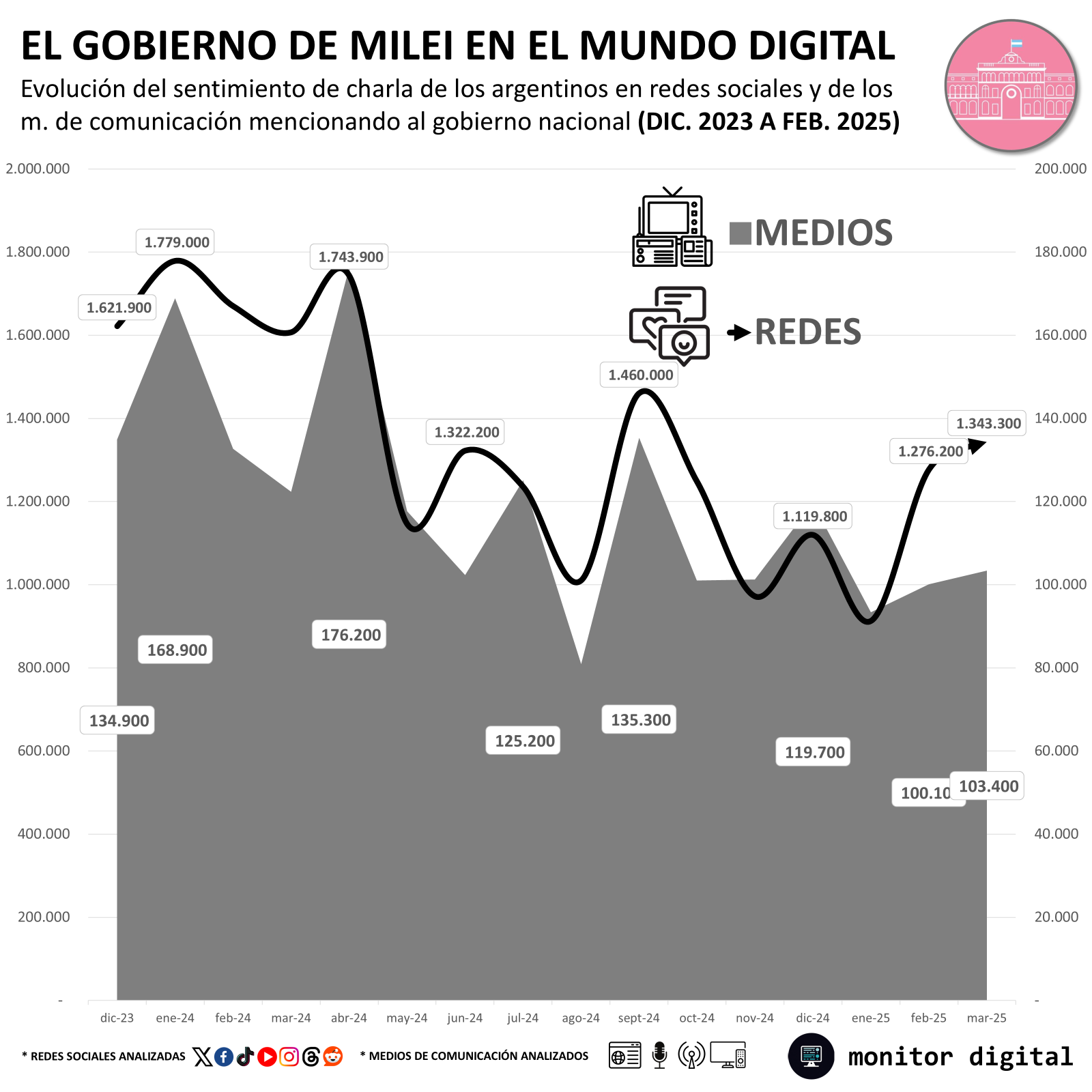 Lejos de moderar el ritmo de publicaciones en redes sociales, marzo comenzó con alta intensidad en la narrativa de los argentinos en el mundo digital sobre el gobierno nacional.