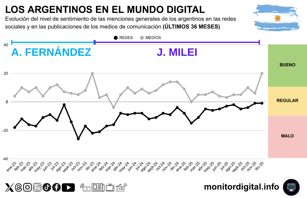 Esta consolidación de la mejora del sentimiento del diálogo argentino en plataformas sociales terminó impactando favorablemente sobre el final de 2025.