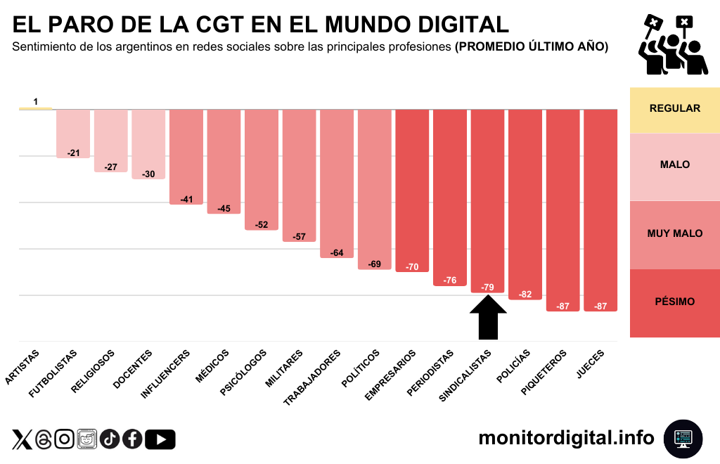 El análisis del sentimiento digital sobre las principales profesiones de los argentinos ubica al sindicalismo en un lugar demasiado incómodo.