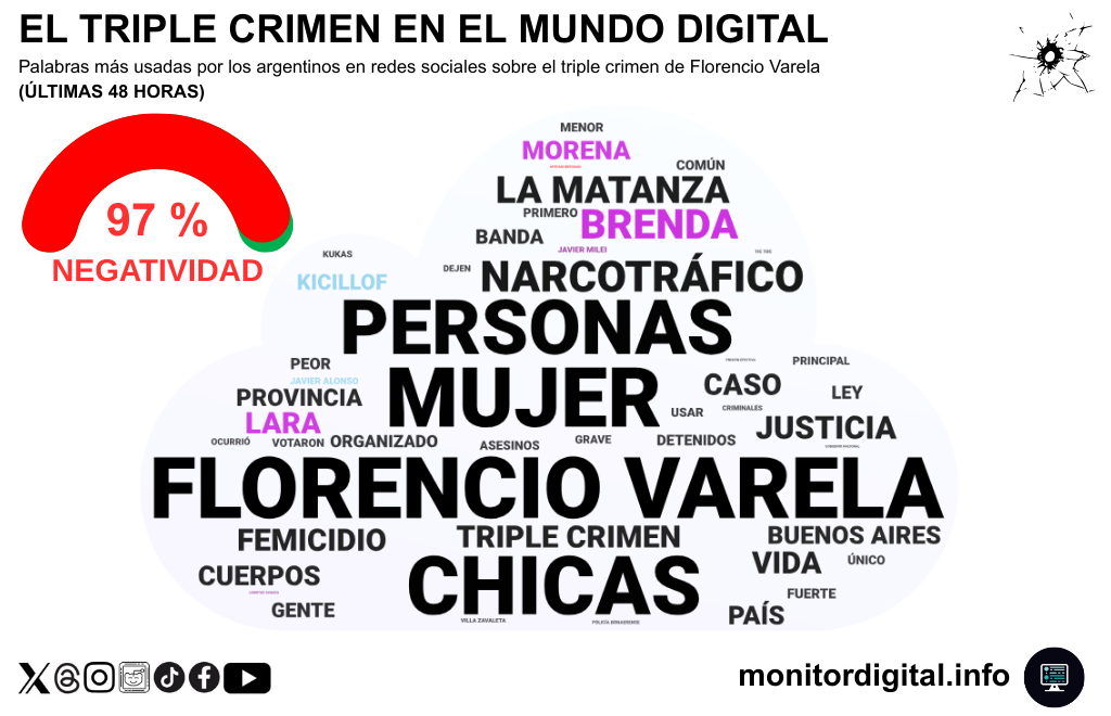 En las últimas 48 horas, el triple crimen de Florencio Varela generó una conversación digital con niveles excepcionales de rechazo.
