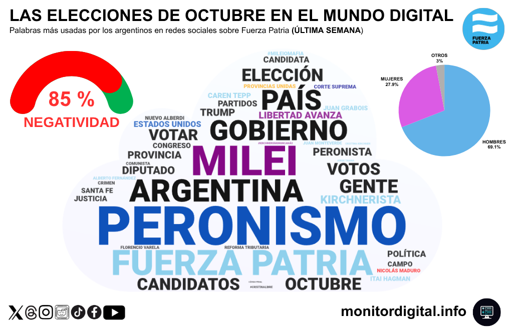 La conversación sobre Fuerza Patria registró 85% de negatividad durante la última semana, el índice más alto del espectro.