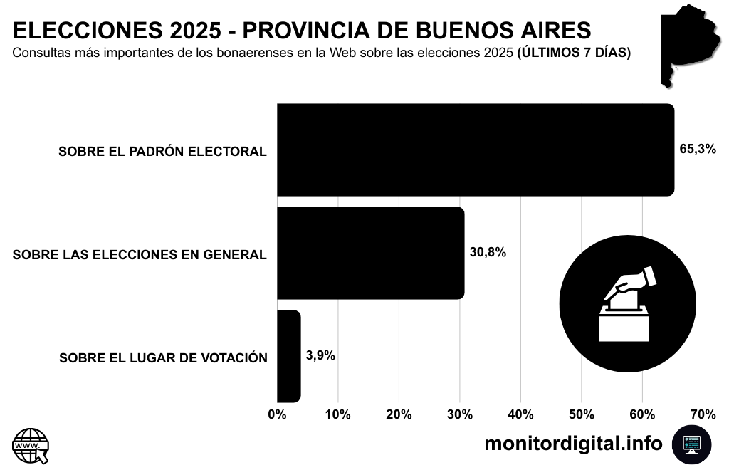 - El 65,3% de las consultas de los bonaerenses en Google están dirigidas a verificar datos del padrón: si se figura, si los datos son correctos, y cómo corregir errores.