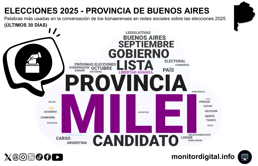 El análisis de Monitor Digital sobre la charla electoral de los bonaerense pone en el centro de la discusión al presidente, Javier Milei, el rasgo saliente de una primera mirada sobre el mapa electoral en el mundo digital.