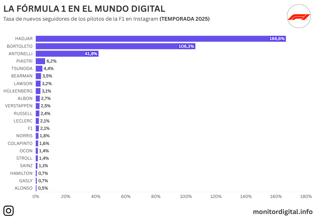 Su cuenta se convirtió en un laboratorio perfecto de cómo un rookie aprovechó la vitrina F1 para multiplicar audiencia.