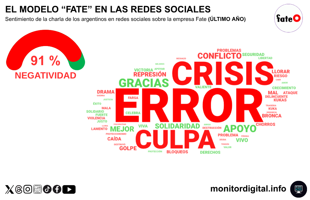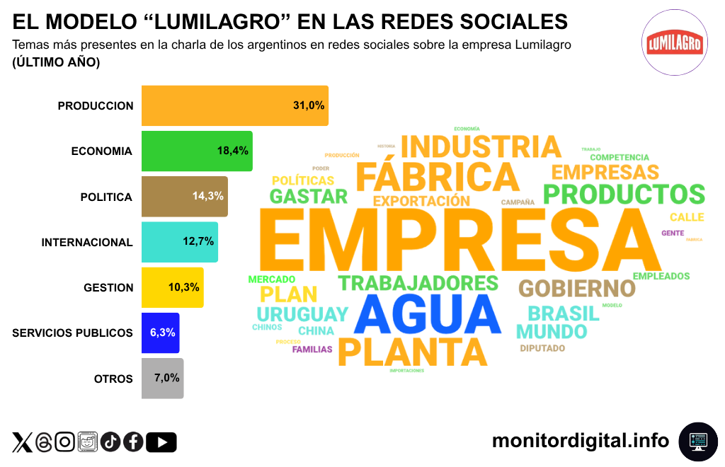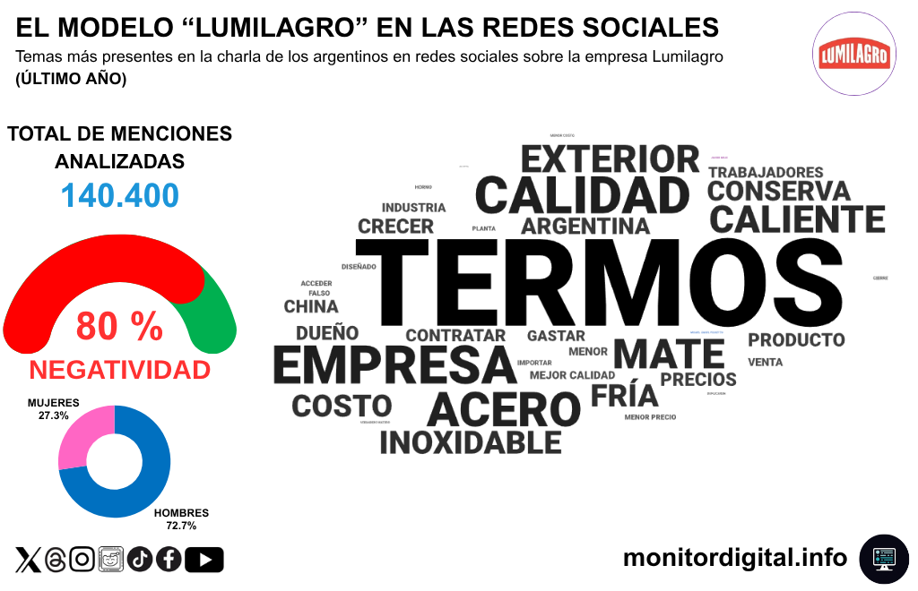 A lo largo de los últimos meses, Fate cuadriplicó en menciones a la marca Lumilagro, con una narrativa fuertemente asociada a la crisis económica y a los subtópicos sobre cierre de empresas, despidos y disputa política.