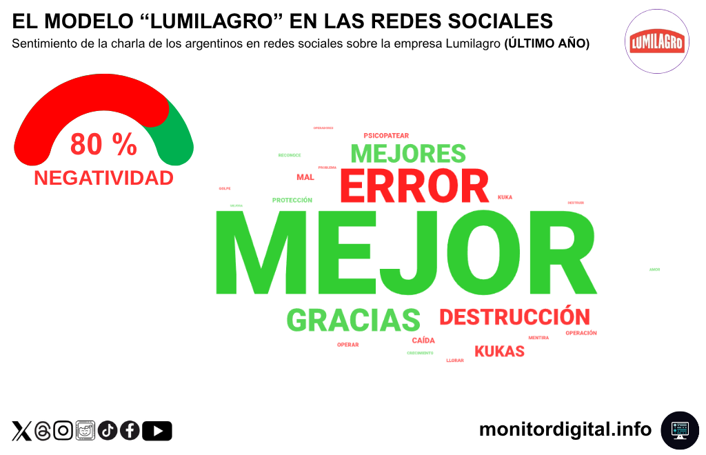 Lumilagro también exhibe negatividad alta, pero el ecosistema conversacional que la rodea es distinto.