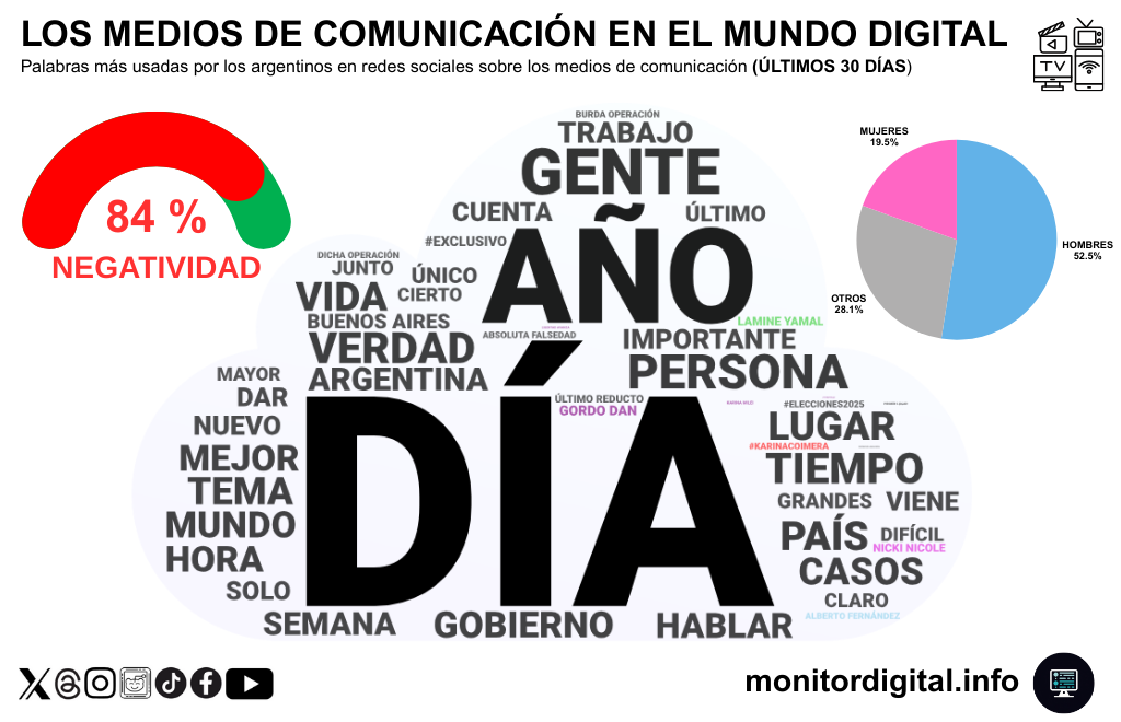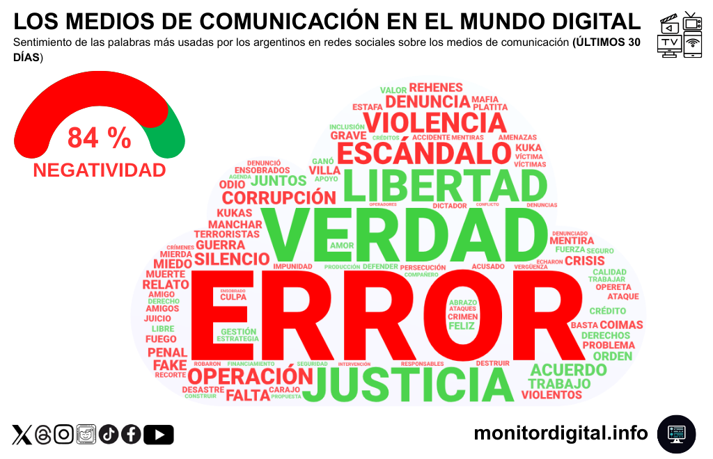 En el último mes, la conversación digital sobre los medios argentinos estuvo marcada por un 84% de menciones negativas.