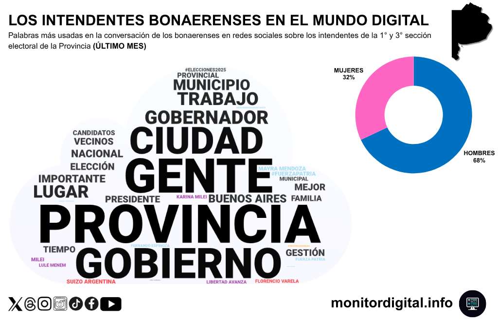 En el último mes, la conversación digital sobre los intendentes de la provincia de Buenos Aires en la 1° y 3° sección electoral se caracterizó por un tono de macro-política más que de gestión local.