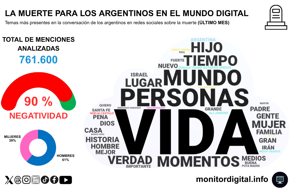 El volumen de menciones en redes sociales relacionadas al conflicto bélico entre Irán, Estados Unidos e Israel ofrece un contexto muy consistente para que la conversación sobre la muerte se expanda y se vuelva más oscura.