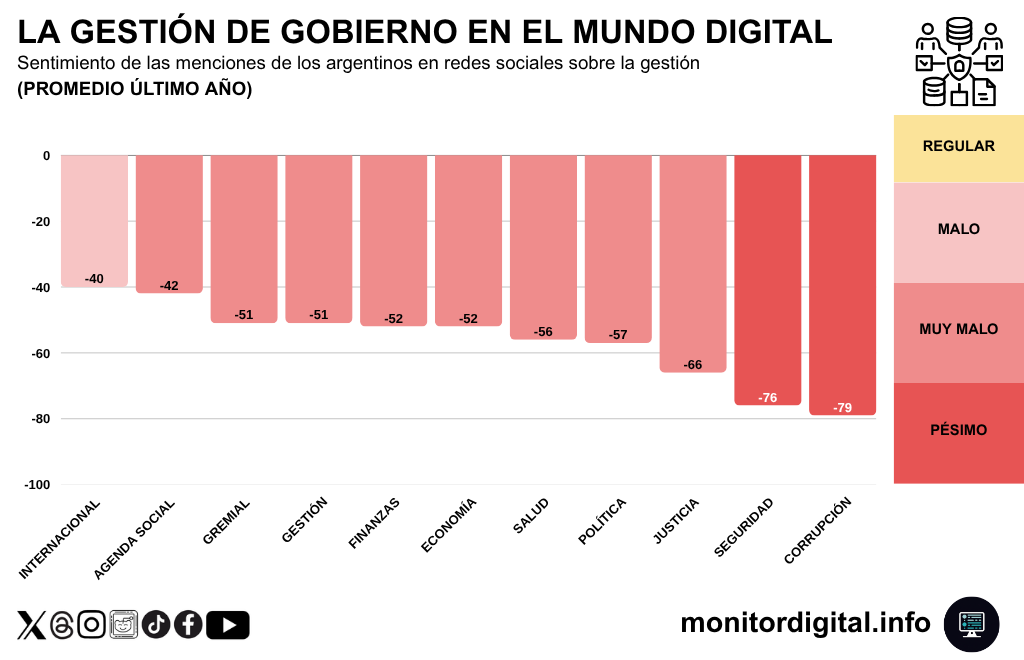 Hay un matiz central en los datos de sentimiento sobre las categorías de conversación de los argentinos sobre la gestión pública.