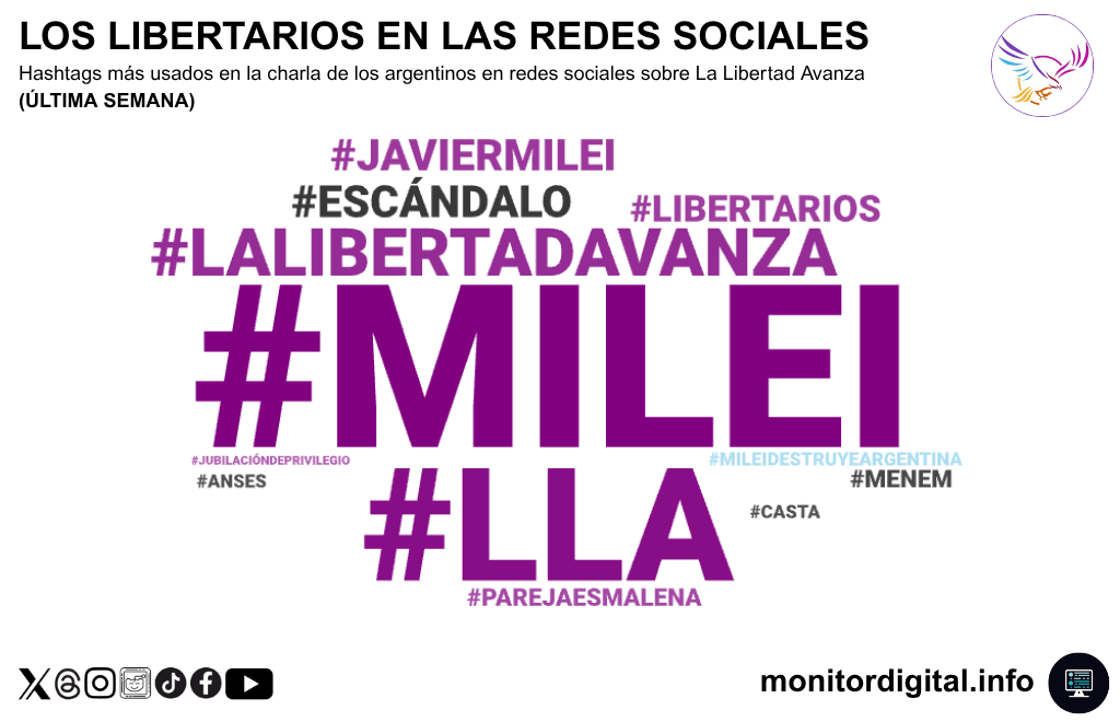 - -La conversación sobre los libertarios aparece capturada por su propia interna, con Sebastián Pareja como una de las figuras de mayor tracción en el debate y con hashtags acusatorios de alta circulación.