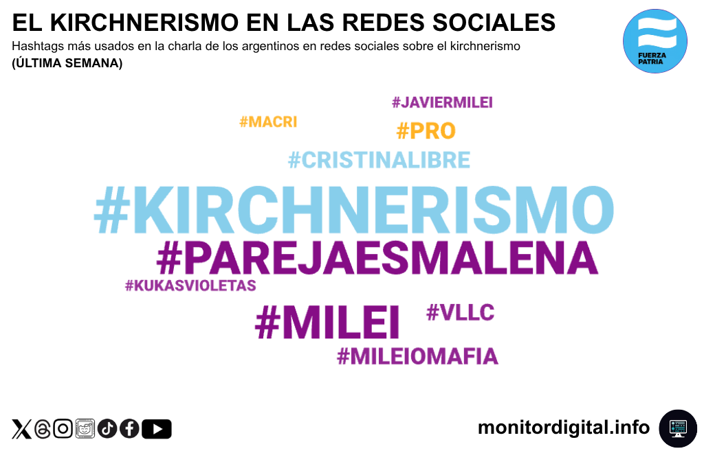 #Kirchnerismo convive con #Milei, #ParejaEsMalena, #CristinaLibre, #PRO, #VLLC y #MileiOMafia.