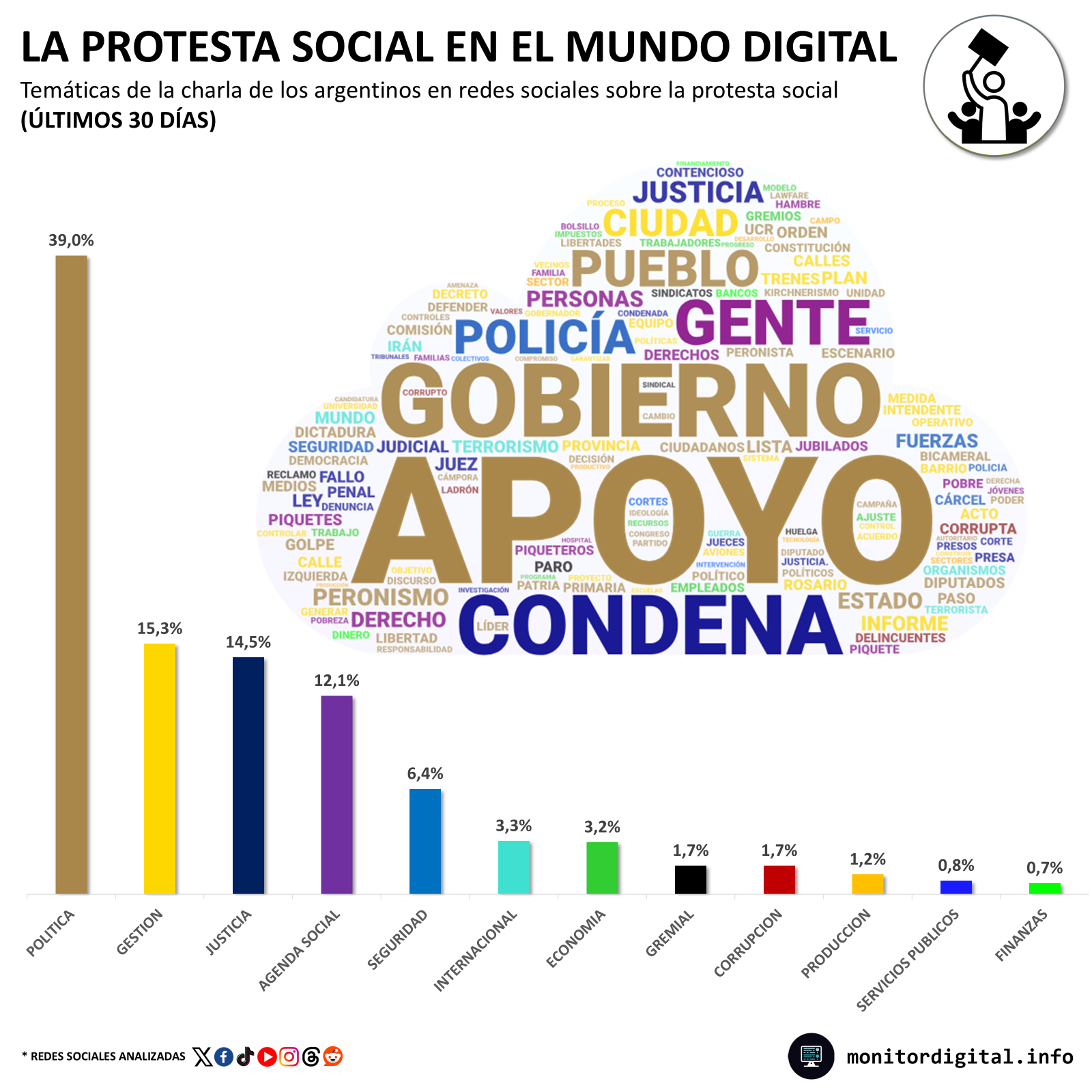 Las cuestiones judiciales obtuvieron poco más del 14%, la agenda social el 12% y la seguridad el 6,4%.