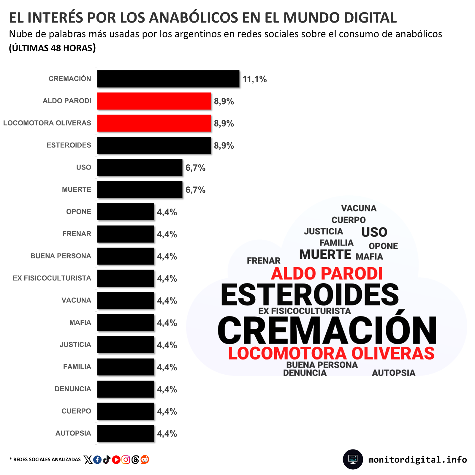 Si bien el tema del consumo de anabólicos tomó impulso en las consulta de Google a partir del ACV que había sufrido "Locomotora" Oliveras, tras la denuncia de Parodi las consultas online se dispararon un 354%.