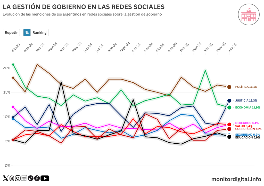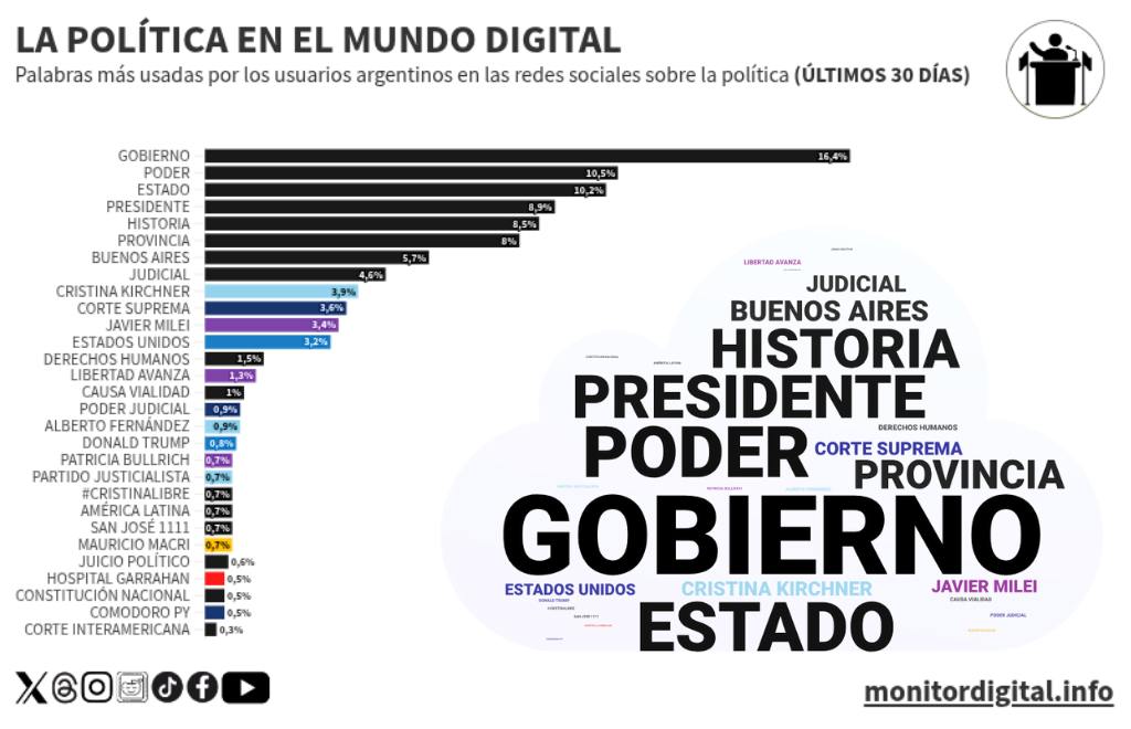 Queda claro que “política” se expande en el ecosistema digital de los argentinos cuando el sistema institucional se ve interpelado por casos como el de Cristina Kirchner y su vínculo con la corrupción.