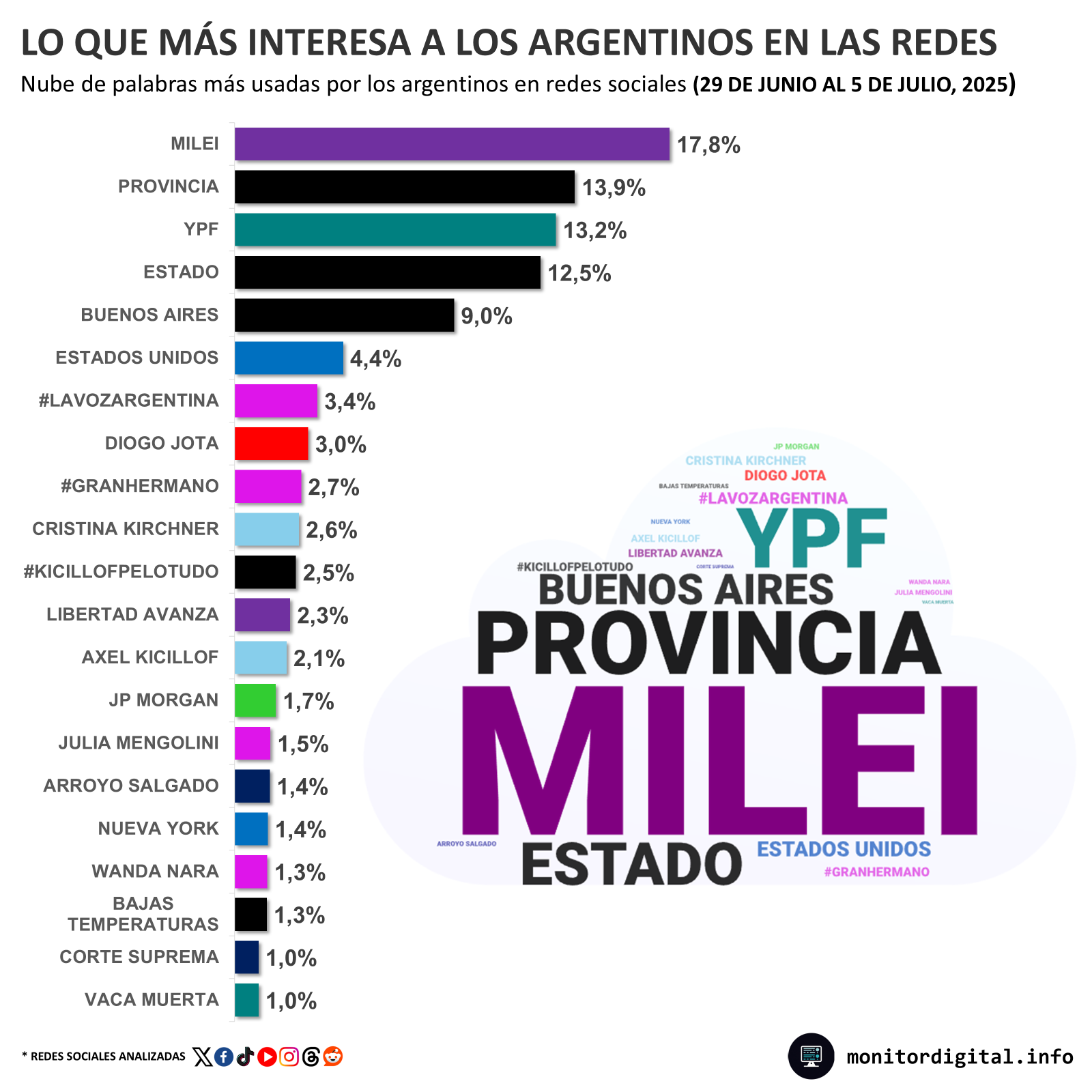 Esta semana en las redes sociales, el fallo adverso por YPF concentró gran parte del interés de los argentinos en la conversación digital, con el presidente Javier Milei en el centro del debate.