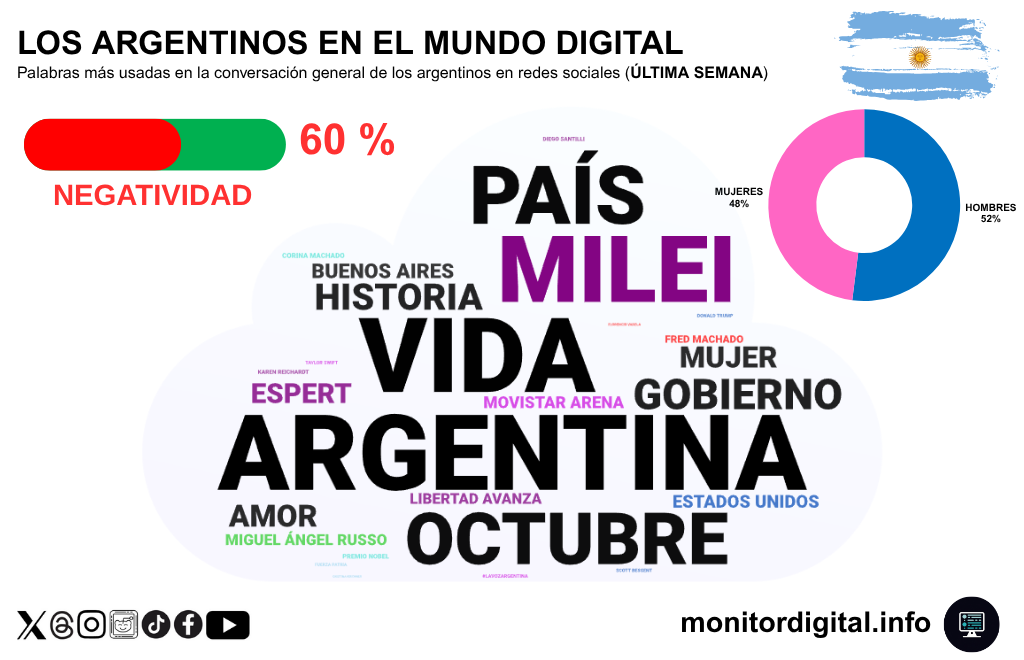 La semana de los argentinos en redes reveló que el país vive en estado de simultaneidad: política, espectáculo, deporte y escándalo se entremezclan en un único flujo discursivo.