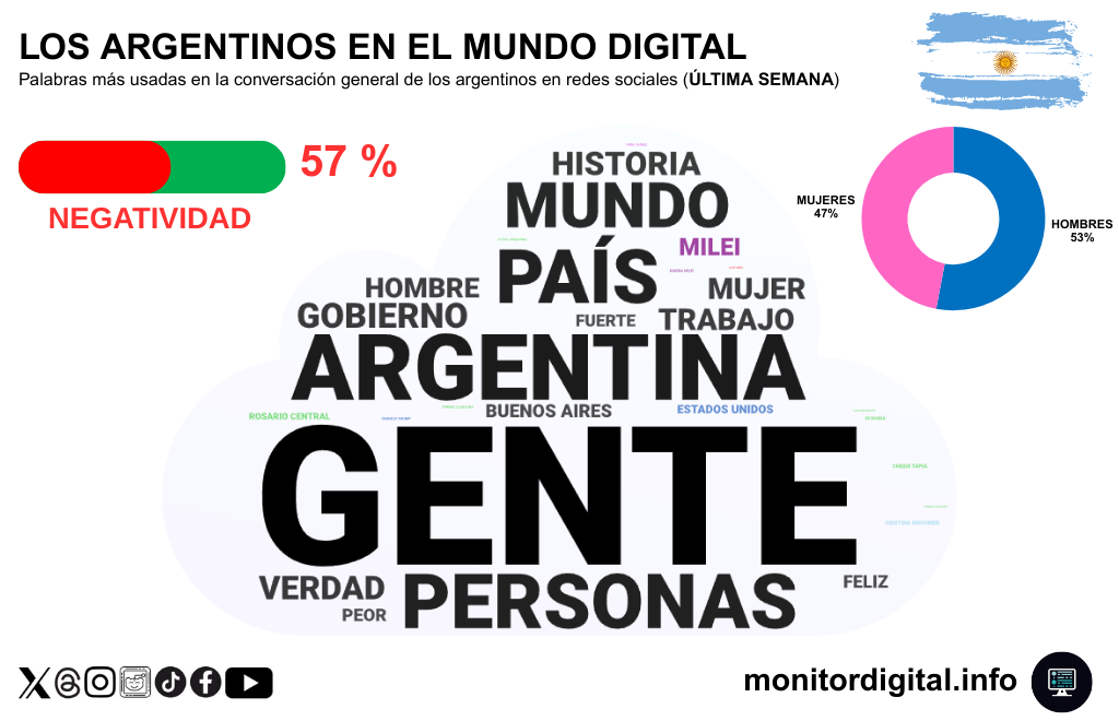 La semana digital de los argentinos arranca con un dato que marca el clima general: 57% de negatividad en la conversación.