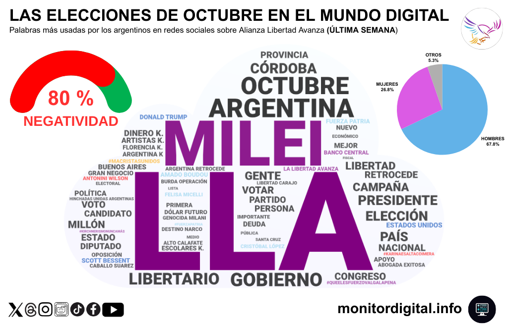 La Alianza Libertad Avanza también enfrenta un clima digital hostil: 80% de menciones negativas.