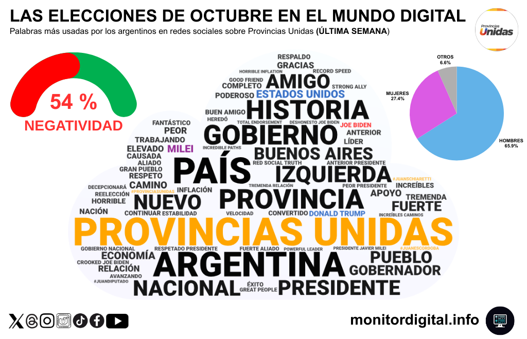- Provincias Unidas se posiciona como el espacio con mayor margen para crecer en el terreno digital: menos negatividad, más diversidad temática y un discurso que mezcla institucionalidad, gestión y economía real.