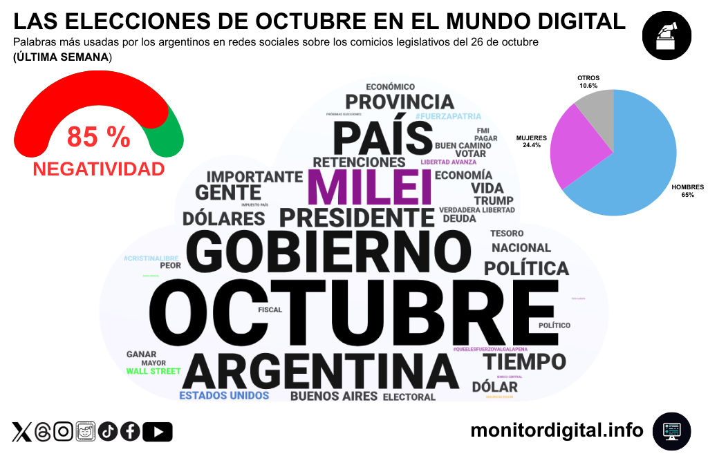 Más allá del análisis por fuerzas políticas (que haremos en este informe), la conversación digital sobre las elecciones legislativas del 26 de octubre muestra un clima general de rechazo hacia el sistema político.