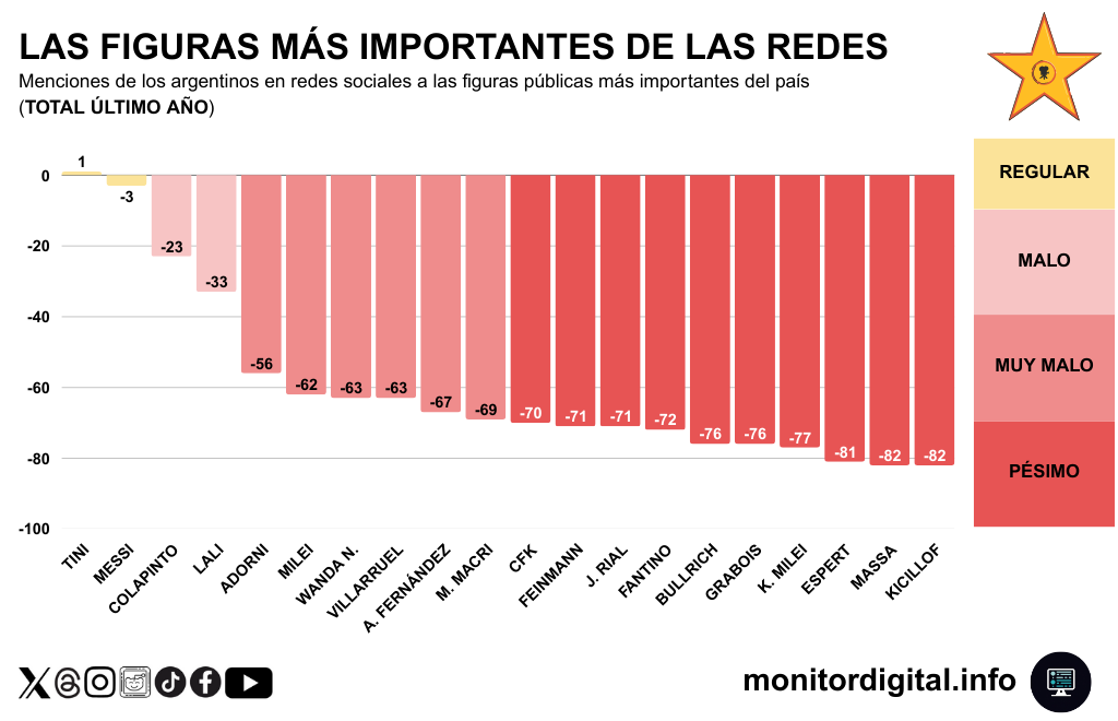 El resto del tablero muestras a las personalidades argentinas en terreno negativo, incluso donde el tema pareció ser “liviano”.