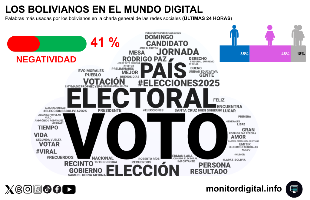 Durante las últimas 24 horas, la conversación digital de los bolivianos giró casi exclusivamente en torno a las elecciones presidenciales celebradas el domingo.