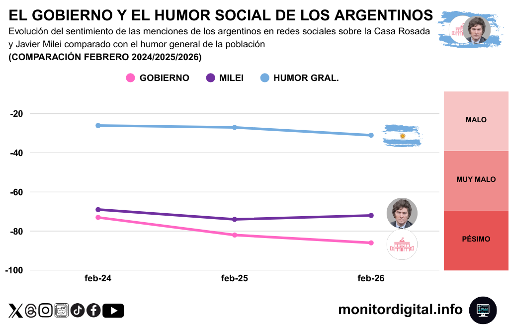 De la comparación interanual surge que el humor general desciende suavemente entre febrero de 2024 y febrero de 206.