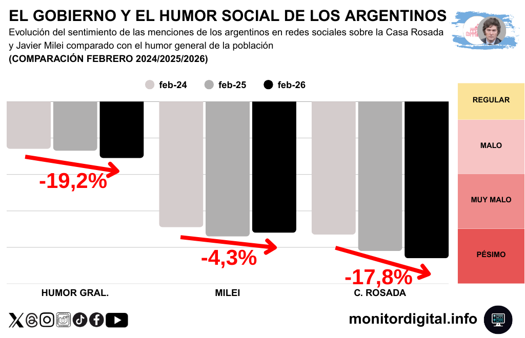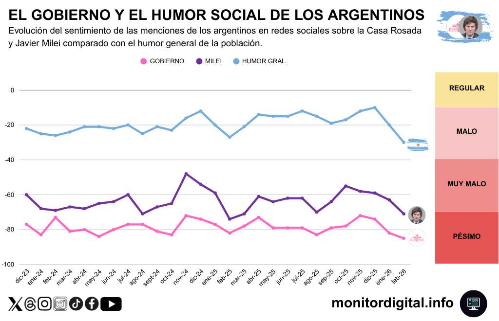 En suma, el gobierno carga con la parte más pesada del malhumor expresado por las argentinos en redes sociales, incluso cuando Javier Milei muestra oscilaciones y momentos de alivio relativo.