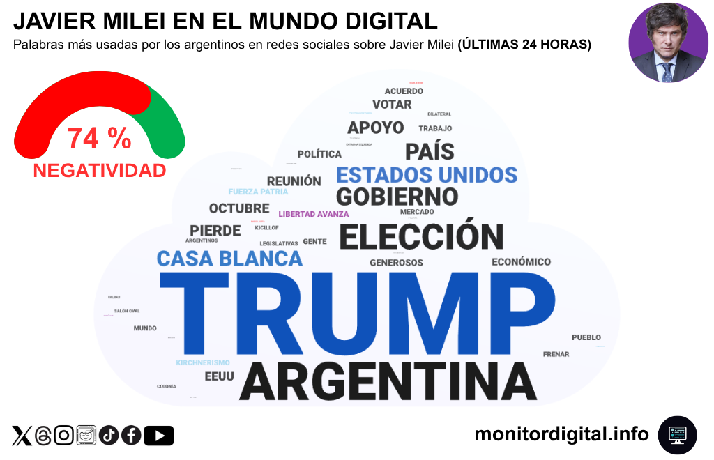 El 74% de negatividad de la charla en redes sobre Milei no sólo expresa enojo, sino también desconfianza hacia el relato de éxito que intentó construir el gobierno tras el encuentro con Donald Trump en Washington.
