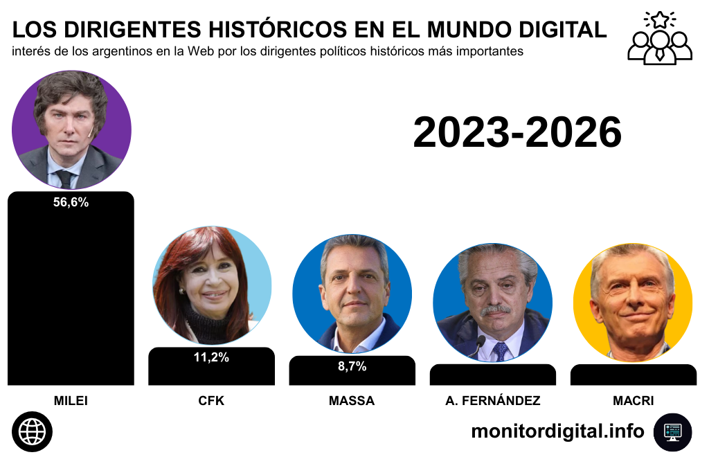 En la lista de figuras más consultadas también aparecieron Alberto Fernández y Mauricio Macri, aunque con una gravitación sensiblemente menor frente al nuevo centro del sistema.