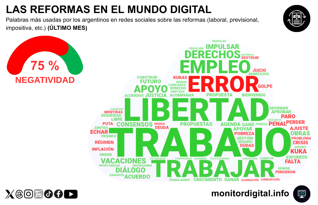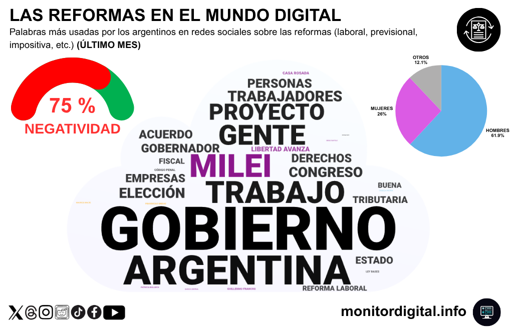 La conversación de los argentinos en redes sociales sobre las reformas emerge con un dato que ordena todo: 75% de negatividad.