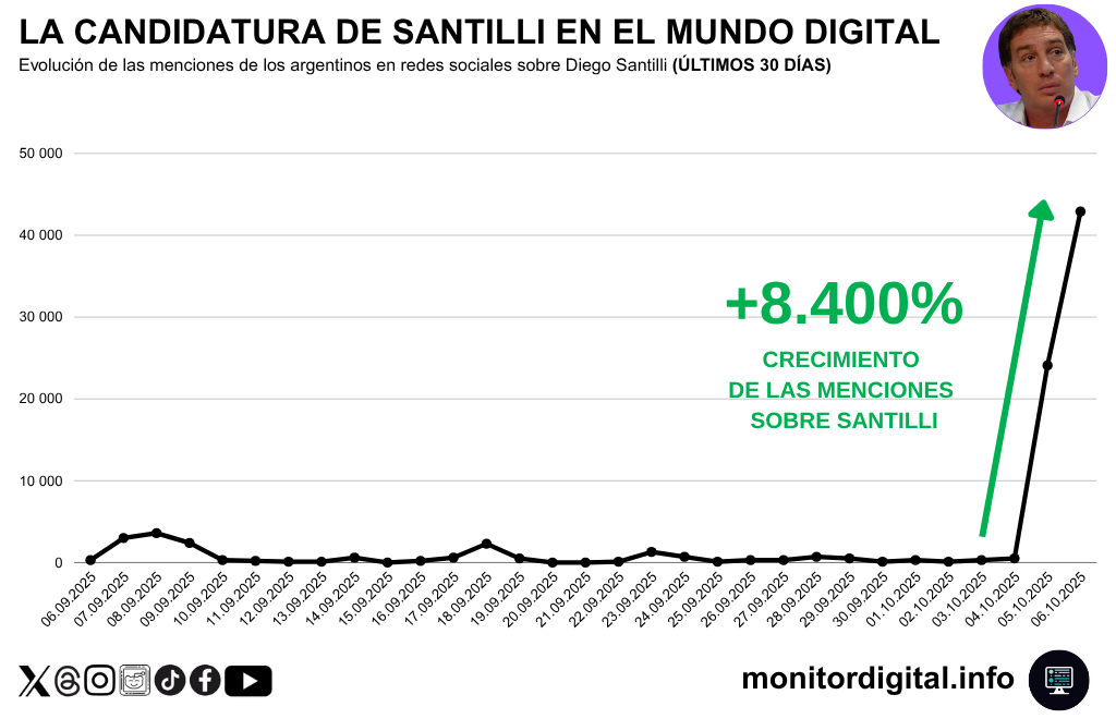 En los últimos treinta días, las menciones sobre el dirigente crecieron +8.400%, marcando un pico histórico en su presencia online.