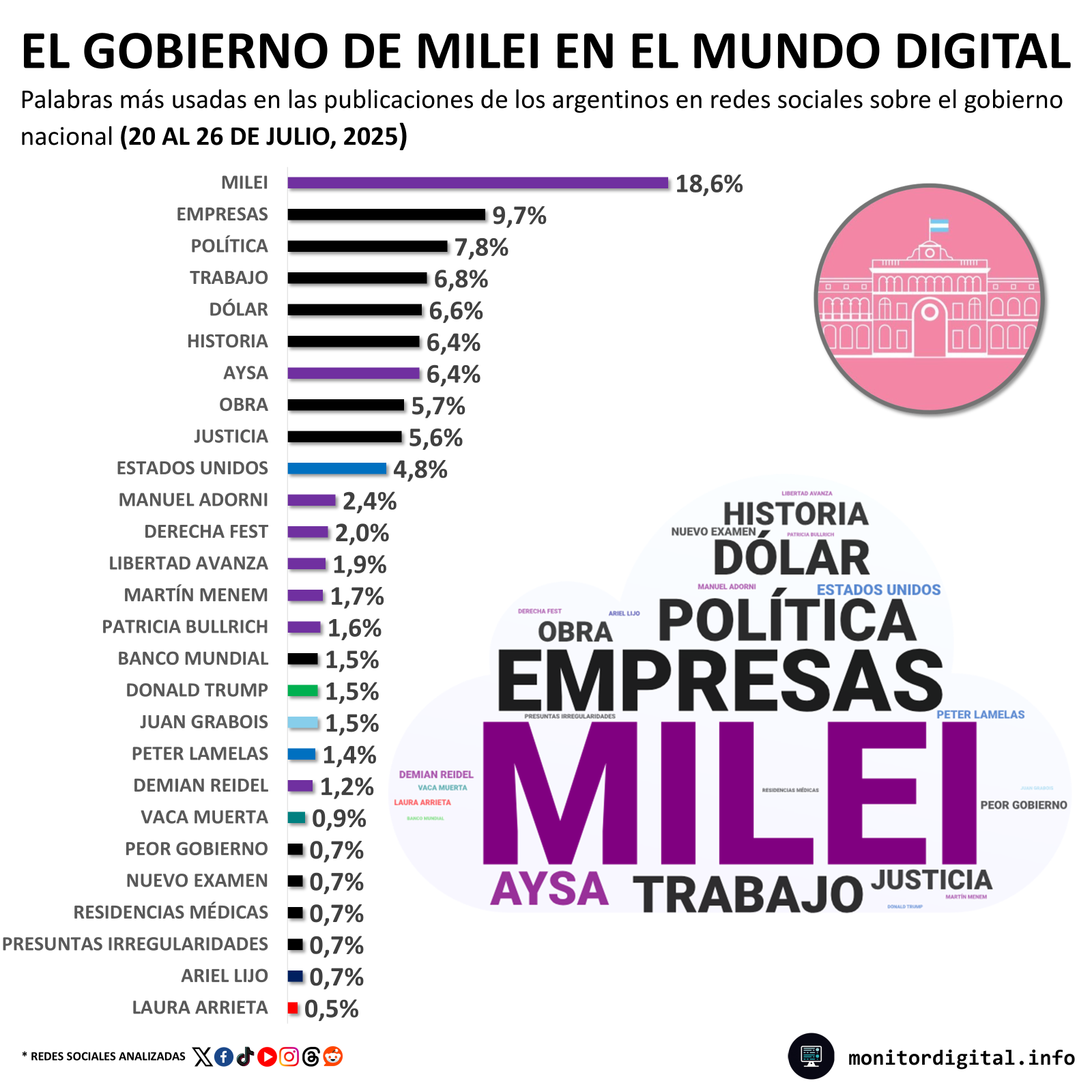 La semana de la Casa Rosada en las redes sociales continuó teniendo en el centro de la narrativa al presidente Javier Milei.