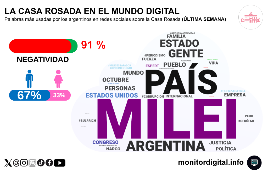 La última semana confirmó un fenómeno que ya aparece como estructural: la Casa Rosada enfrenta un escenario digital dominado por la negatividad.