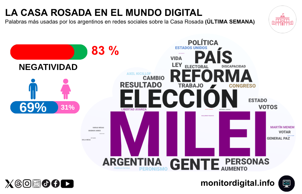 Durante la última semana, el eje de la conversación sobre la Casa Rosada volvió a concentrarse en Javier Milei, que absorbió la casi totalidad del debate político digital.