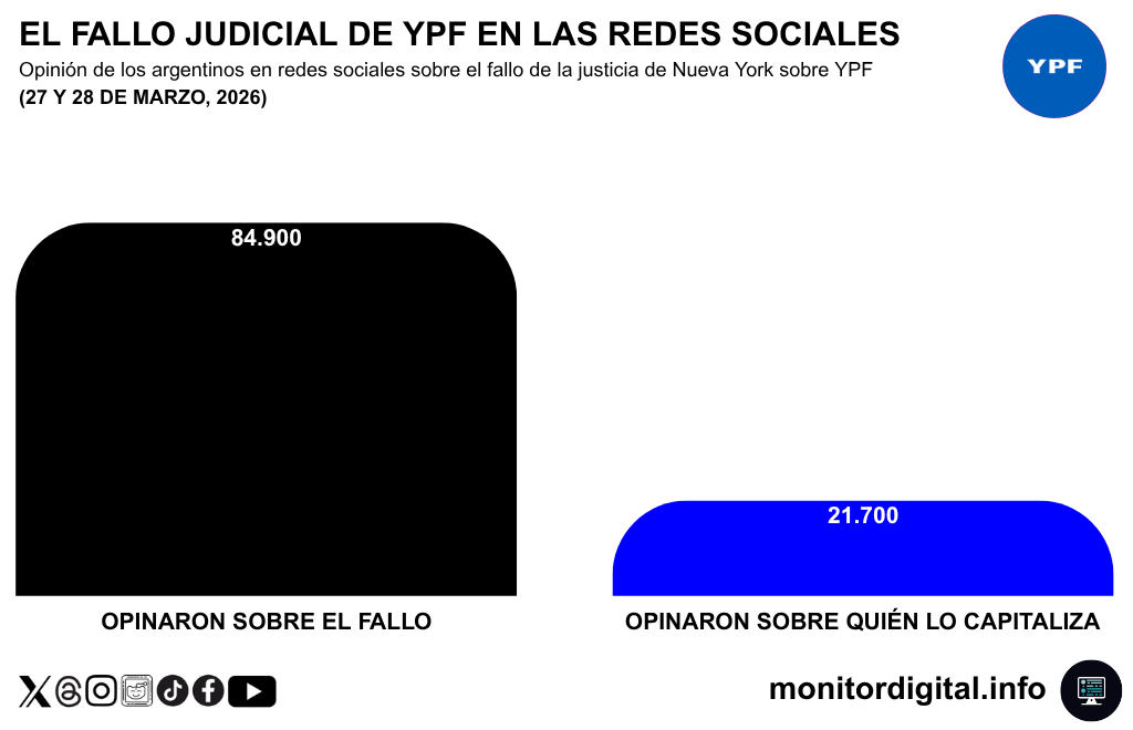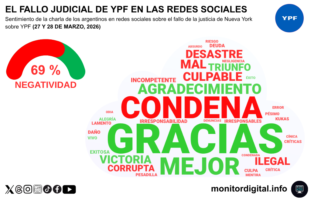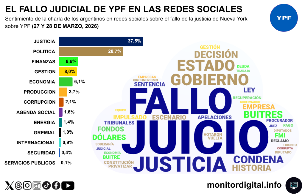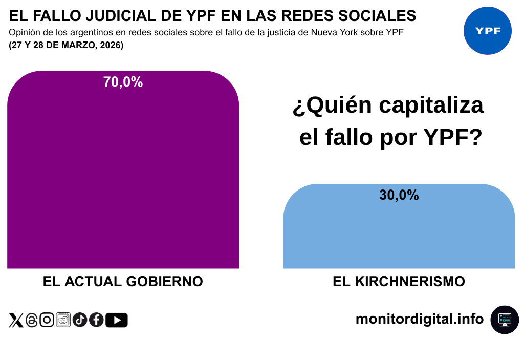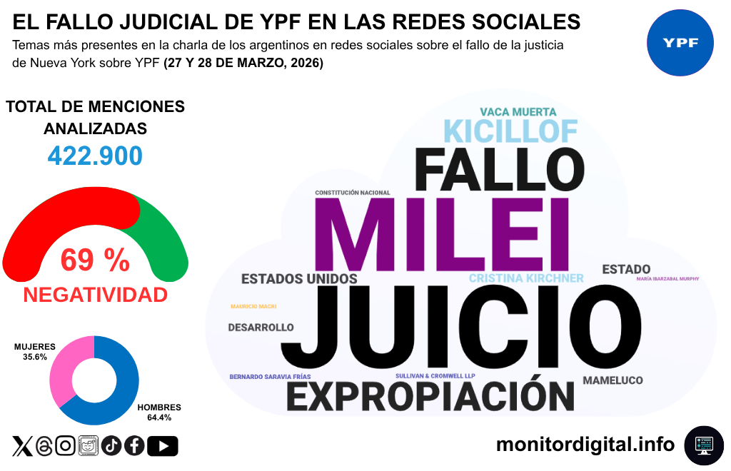 Analizando las menciones de los argentinos en redes sobre el resonante fallo judicial por YPF, una gran mayoría priorizó discutir sobre la resolución en sí, más que sobre el beneficio político que pueda obtener el actual gobierno o el kirchnerismo.